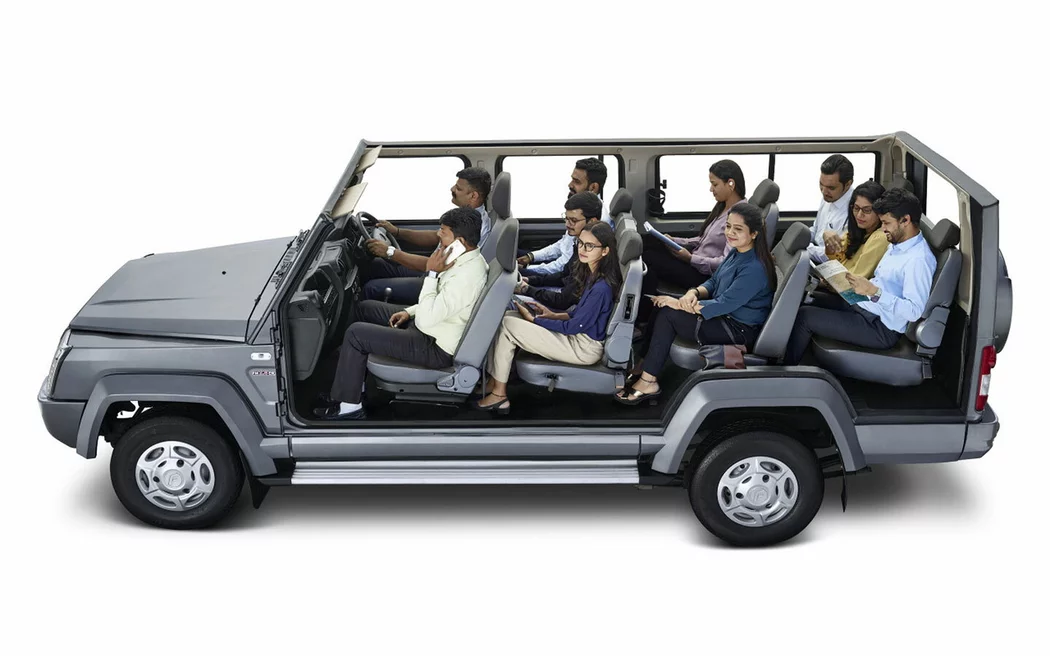 Najważniejsza jest jednak przestronność kabiny, której koncepcja przypomina Land Rovera Defendera z przodu, gdzie widzimy łącznie 4 rzędy siedzeń, ułożonych w układzie 2+3+2+3. Ten pojazd prawdopodobnie nie będzie też zbyt sławny ze względu na minimalną przestrzeń na nogi. Chociaż według producenta Citiline oferuje najlepszą przestronność w każdym rzędzie. Przynajmniej w swoim segmencie. Jednak modele Trax Toofan i Trax Cruiser są jeszcze większe, oferując odpowiednio 11 i 13 miejsc pasażerskich. Jednak z tyłu pasażerowie siedzą już naprzeciwko siebie.