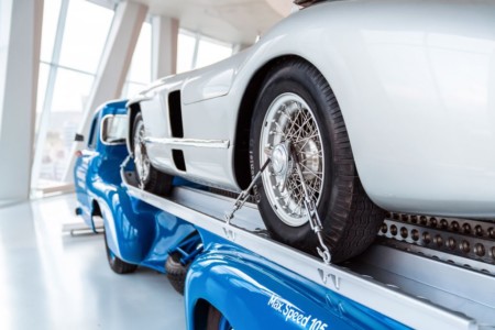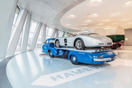 Ekskluzywny ładunek: przeznaczenie transportera najlepiej pokazuje umieszczony na nim eksponat – przymocowany do platformy ładunkowej 300 SLR (W 196 S). To właśnie ten wyścigowy model zapewnił Mercedesowi tytuł w Mistrzostwach Świata Samochodów Sportowych 1955. Przez cały ówczesny sezon transporter służył do przewozu 300 SLR oraz bolidów Formuły 1 W 196 R po całej Europie. Stanowił szybkie i niezbędne ogniwo logistyki pomiędzy fabryką w Stuttgarcie a torami wyścigowymi.