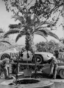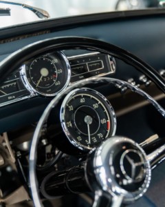 Pierwszy z hamulcem powietrznym: wyścigowy samochód sportowy umieszczony na transporterze był pierwszym wyprodukowanym egzemplarzem tej serii modelowej. Jego cechą szczególną jest zlokalizowany za fotelem kierowcy hamulec powietrzny, uruchamiany podczas hamowania z wysokich prędkości w celu odciążenia hamulców bębnowych. Korzystały z niego egzemplarze 300 SLR startujące w 24-godzinnym wyścigu Le Mans oraz w Grand Prix Szwecji.