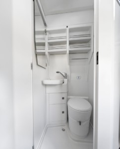 Grand California jest również wyposażana w szereg udogodnień uprzyjemniających urlopowy pobyt na kempingu. Są wśród nich m.in. system fotowoltaiczny, będący wyposażeniem standardowym i zapewniający dodatkową energię elektryczną potrzebną np. do zasilania lodówki, oświetlenia czy uruchomienia własnego telewizora. Opcjonalnie, Grand Californię możemy wyposażyć w klimatyzację postojową 230 V czy instalację do odbioru telewizji satelitarnej. Znajdziemy tu również gniazdka USB, gniazdka 230 V i jedno gniazdko 12 V. Dzięki nim, w kuchni można łatwo podłączyć czajnik czy ekspres do kawy, a smartfony, tablety i laptopy – na przykład w jadalni lub sypialni.