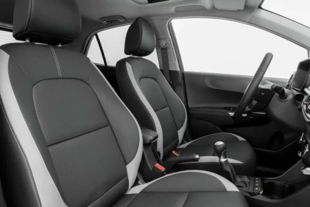 Udoskonalona kabina Picanto jest dostępna z wykończeniem w różnych kolorach i z różnych materiałów. Wersja podstawowa jest wyposażona w siedzenia z czarnej tkaniny. Opcjonalne wykończenia obejmują pakiety kolorystyczne – czarny Glossy, zielony Adventurous i brązowy Rich. Kolory te są inspirowane naturą i zwiększają możliwość dostosowania wyglądu wnętrza do preferencji nabywcy. Do wyboru są także fotele pokryte tapicerką ze sztucznej skóry, które zapewniają wysoki komfort. Odmiana GT-Line jest standardowo wyposażona w pakiet czarny Glossy, a pakiet zielony Adventurous jest opcjonalny. Pakiety kolorystyczne zawsze obejmują fotele i podłokietniki drzwi wykonane ze sztucznej skóry, a także kolorowe obramowania wokół nawiewów powietrza i dźwigni zmiany biegów.