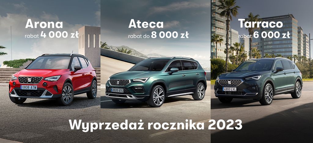 Korzystnej zmianie uległy ceny poszczególnych modeli hiszpańskiej marki. Model SEAT Arona w wersji Style klienci kupią już od 83 900 zł brutto, w wersji Marina – od 88 000 zł brutto, natomiast w wersji FR – od 101 400 zł brutto. Ceny modelu SEAT Ateca także zostały obniżone – w każdym z wariantów są one do 8 tys. zł niższe, dzięki czemu przykładowo za model Ateca Reference zapłacimy 93 800 zł. Rabatem 6 tys. zł objęty został również model SEAT Tarraco, którego w wersji Style zakupimy od 147 600 zł brutto, a w wersji Xperience – od 176 800 zł brutto.