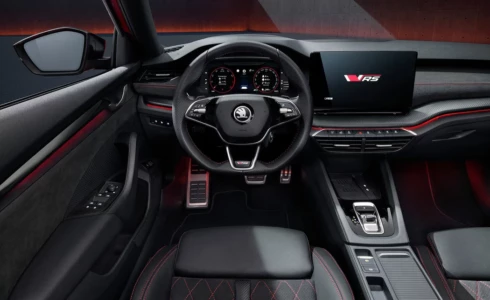 Skoda Octavia RS w standardzie będzie mogła pochwalić się wspomnianymi już reflektorami matrycowymi, 18-calowymi kołami, systemem multimedialnym z 13-calowym ekranem i sportowymi fotelami.