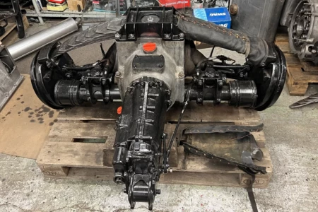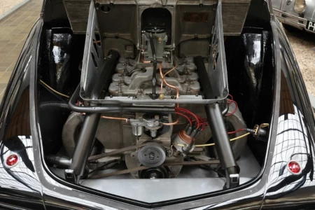 Ale tym razem ośmiocylindrowy widlasty silnik benzynowy o pojemności skokowej 2,97 litra z suchą skrzynią korbową, został umieszczony za tylną osią. Wystarczył mu pojedynczy wałek rozrządu pomiędzy głowicami, który sterował gigantycznymi dźwigienkami zaworów. Projektanci starali się maksymalnie zmniejszyć masę pojazdu, która ostatecznie osiągnęła granicę 1700 kg. Wspomniane podwozie uzupełniono o zawiasy poprzeczne z przodu, co w czasach sztywnych osi było rozwiązaniem bardzo zaawansowanym. Podłoga musiała być równa, ale nie ograniczona centralnym tunelem wału napędowego. Pióra resorów również tradycyjnie nie były podłużne, ale poprzeczne. Baterie wraz z chłodnicą oleju i kołem zapasowym umieszczono w przedniej części pojazdu.