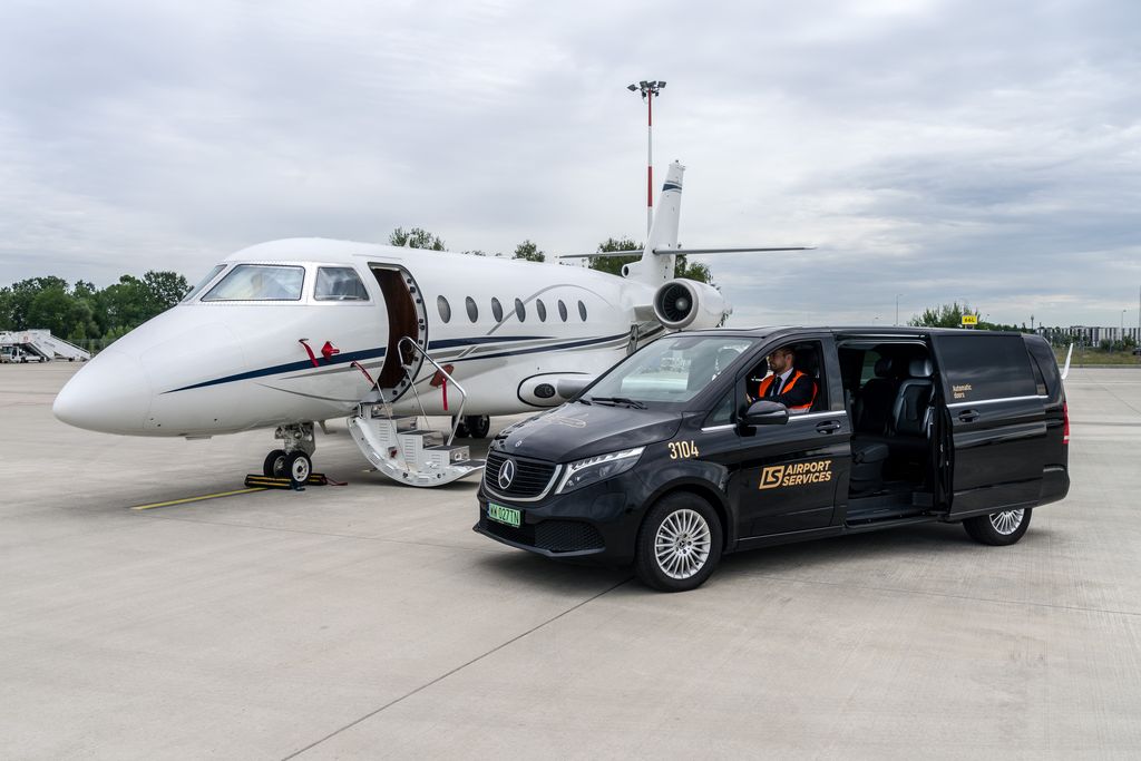 Przejażdżka z ulokowanego na północnym krańcu Lotniska Chopina Terminala General Aviation, wzdłuż całego Terminala A, aż do LS CARGO Terminal na jego południowym końcu, zabiera nawet ok. 20 minut. Z okien niemal bezszelestnie poruszającego się EQV można w tym czasie oglądać różne czynności, które wchodzą w zakres obsługi handlingowej, jaką LS Airport Service wykonuje dla swojego głównego klienta PLL LOT oraz pozostałych linii operujących z warszawskiego portu lotniczego. Jest na co patrzeć: po przylocie i podczas przygotowania samolotu do kolejnego startu pracownicy należącej do Polskiej Grupy Lotniczej spółki dokonują wszelkich niezbędnych czynności przygotowujących maszynę do dalszej bezpiecznej eksploatacji. Wszystko odbywa się w ściśle określonych procedurach zgodnych z wymogami bezpieczeństwa lotniczego. Obejmuje to m.in. załadunek i rozładunek bagaży, wypychanie i holowanie samolotu, procedury odladzania, transport lotniskowy, przewóz pasażerów z terminalu do samolotu i inne niezbędne działania. Dwa Mercedesy EQV, które od początku roku pracują w LS Airport Service, wożą pasażerów lotów pozarejsowych: klientów taksówek powietrznych oraz właścicieli prywatnych samolotów.