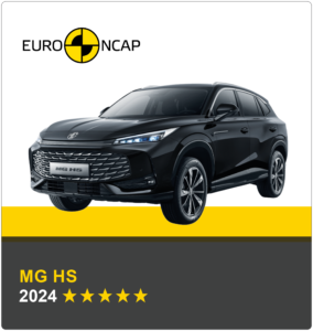 Ostatni test Euro NCAP dla MG HS poprzedniej generacji miał miejsce w 2019 roku, kiedy model również otrzymał ocenę pięciu gwiazdek. Od tego czasu protokoły testowe zostały zaktualizowane, co zwiększyło wymagania wobec producentów. Marka MG dostosowała swój flagowy model, wprowadzając nowe technologie bezpieczeństwa, aby w 2024 roku ponownie spełnić najwyższe standardy i uzyskać pięciogwiazdkową ocenę. Wśród udoskonaleń znalazły się m.in. zaawansowana ochrona pieszych i rowerzystów oraz skuteczny system automatycznego hamowania awaryjnego (AEB), reagujący na różne zagrożenia, w tym skutecznie wykrywa pieszych, rowerzystów i inne pojazdy.