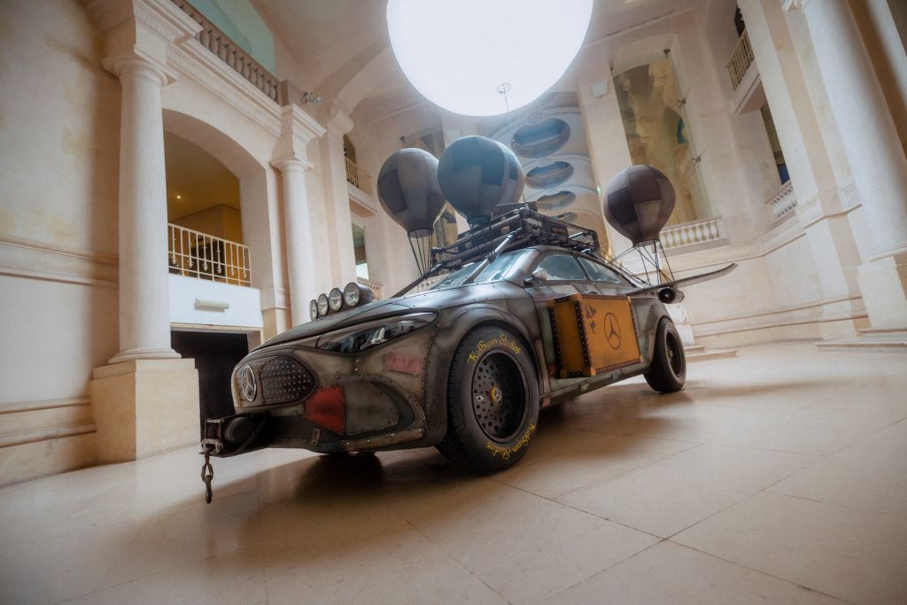 Colm Dillane, artysta i projektant mody znany z pomysłowego opowiadania historii i odważnego języka projektowania, przekształcił zupełnie nowego CLA w ręczniewykończony „samochód superbohatera”. Do jego znaków rozpoznawczych należą elementy przywodzące na myśl turbiny oraz balony, zamontowana z przodu wyciągarka, bagażnik dachowy w rajdowym stylu, proca, która nostalgicznie nawiązuje do czasów dzieciństwa, oraz elementy inspirowane patchworkiem z motywem „Kissing Face” KidSuper. Pomysłowa kreacja zawiera także charakterystyczne detale wzornictwa z przełomowych pojazdów z historii trójramiennej gwiazdy. Na przykład wygląd obręczy to ukłon w stronę futurystycznego stylu koncepcyjnego samochodu Mercedes-Benz F 200 z 1996 roku, a lusterka boczne nawiązują do kultowej sylwetki legendarnego 300 SL. W skrócie: Colm Dillane stworzył CLA, który ma być magicznym samochodem symbolizującym nieograniczoną kreatywność i entuzjazm.