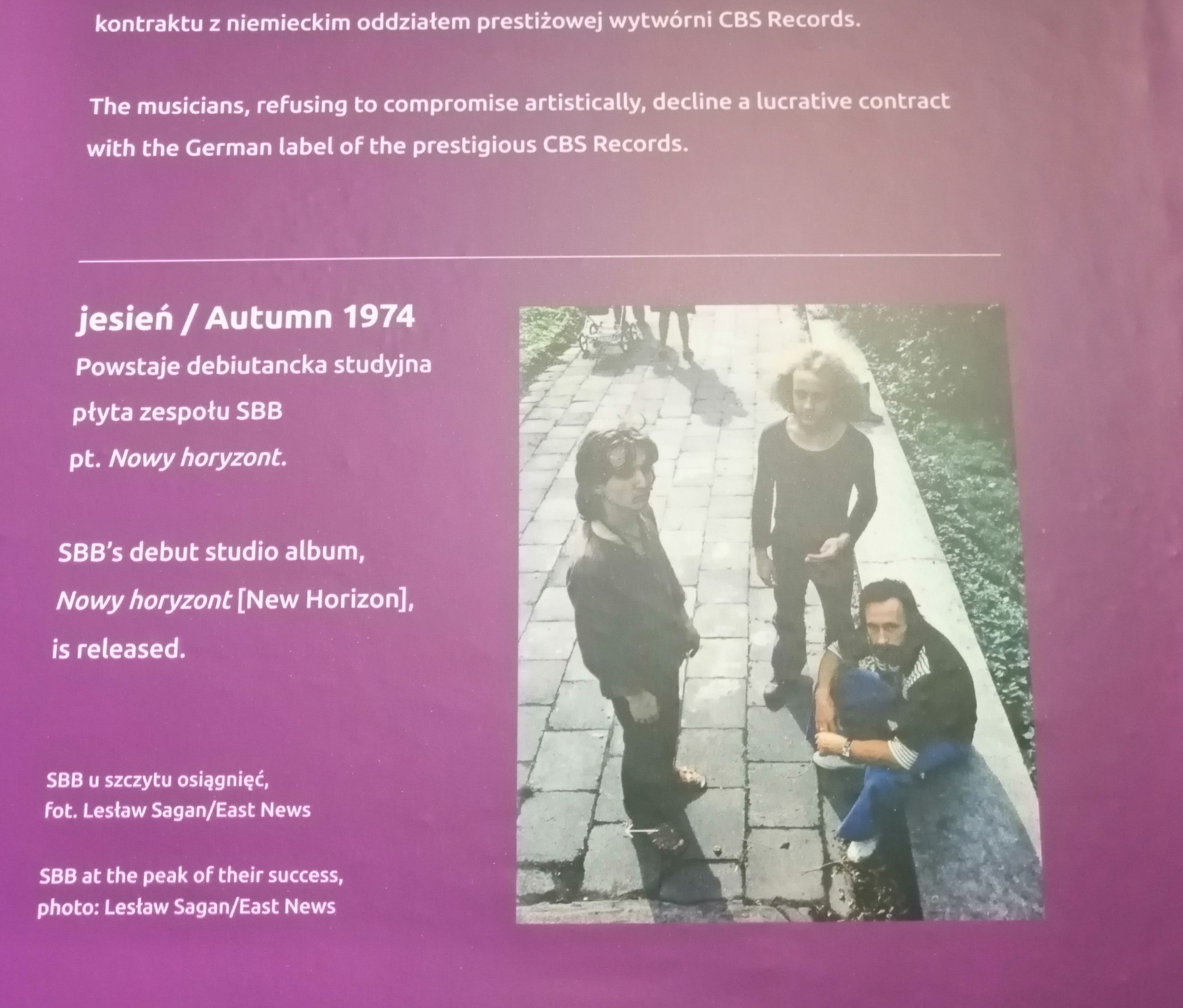 Z całą pewnością dla miłośników SBB jest to wyjątkowa wystawa, którą warto zwiedzić. Eksponowane są instrumenty zespołu, plakaty oraz zdjęcia, a wśród nich słynne zdjęcie SBB, autorstwa Lesława Sagana, dziennikarza i dokumentalisty życia artystycznego minionych lat. Zdjęcia Lesława Sagana znane są z wielu wydawnictw płytowych, które ilustrują, jak m.in. Anny Jantar, Czerwonych Gitar, Skaldów, Niebiesko-Czarnych, No To Co, Breakout.