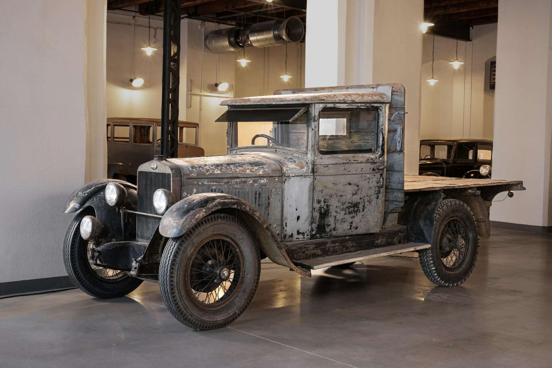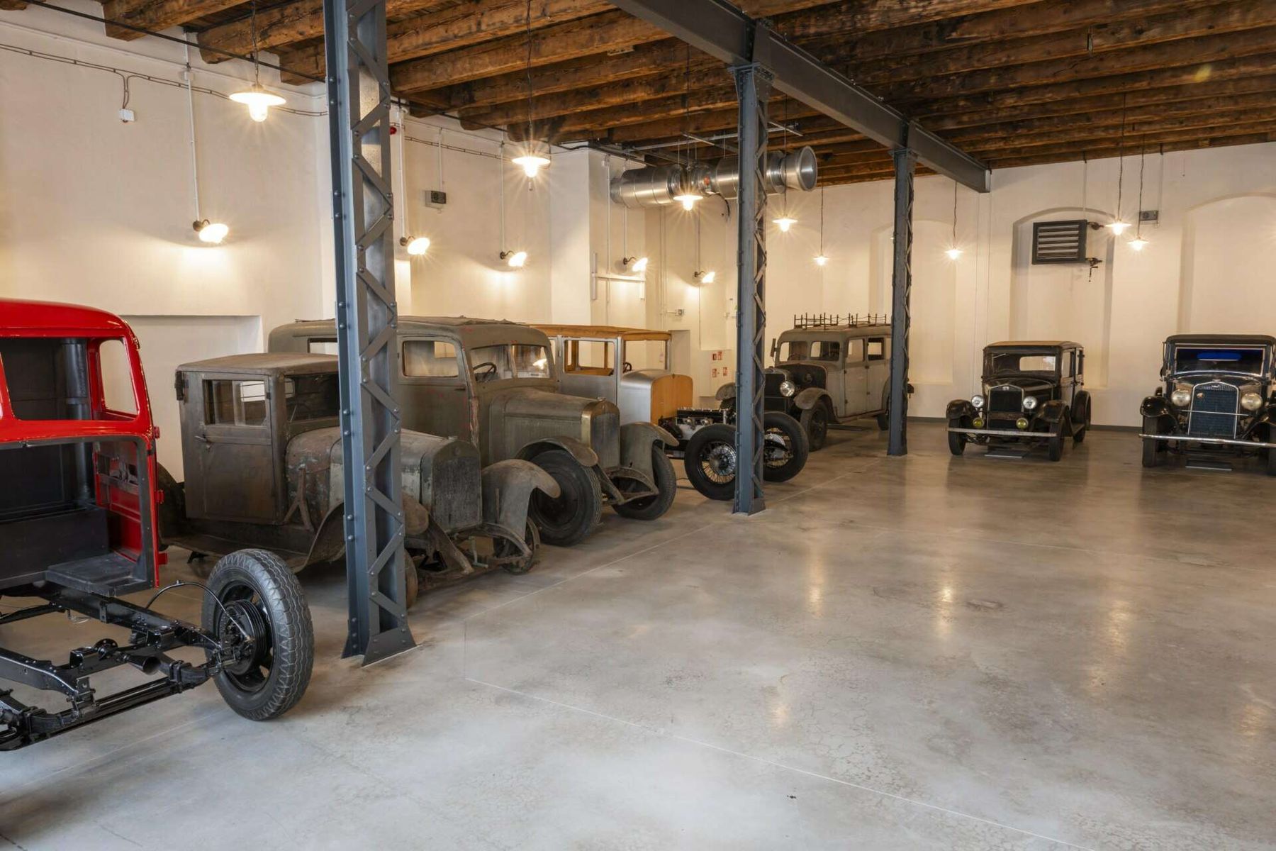 Wybór samochodów w stanie surowym lub częściowo odnowionym jest prezentowany w stylu garażowym, który podkreśla ich historię i charakter samego budynku. Każdy eksponat posiada krótki opis, a dalsze informacje można uzyskać po zeskanowaniu kodu QR. Podobnie jak w przypadku wystawy głównej, prezentowane samochody będą się stale zmieniać.