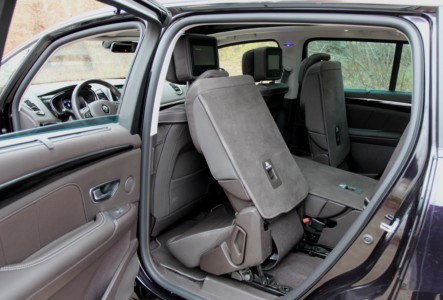 To z całą pewnością samochód warty polecenia. Zapewnia komfortowa jazdę dla pięciu pasażerów, bo dwójka korzystająca ze składanych siedzeń ma już niestety mniejszy komfort. Wygodne i ergonomiczne fotele docenimy podczas długiej jazdy. Pasażerowie zajmujący miejsca w drugim rzędzie mogą miło spędzać czas na oglądaniu emisji wideo. Ekrany wmontowano w przednie zagłówki, a dołączone fabrycznie słuchawki zapewnią nam dźwięk najwyższej jakości.
